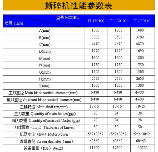 撕碎刀片組、承載箱體、箱體支架、進料系統、動力系統、電器控制系統組成的機器,也可依據客戶的實際需求進行個性化配置